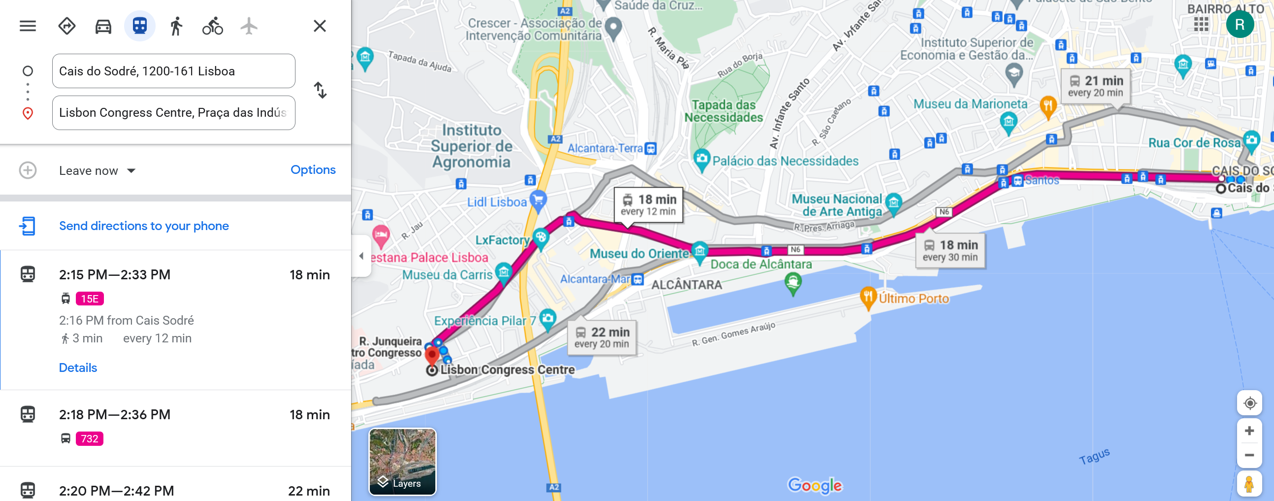 [Train] From the city center, take the Metro to Cais do Sodré (end of green line).